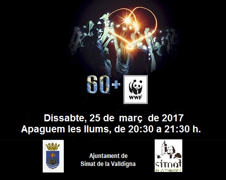L'Ajuntament de Simat convoca a tots els veïns i veïnes a sumar-se a la iniciativa denominada «L'hora del planeta 2017». Sota el lema «Il·lumina el món amb una acció climàtica», el Consistori insta a apagar equips, llums, motors i altres elements de consum prescindible, el dissabte, 25 d'aquest mes de març, de 20:30h a les 21:30h.