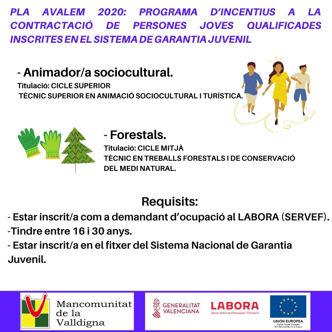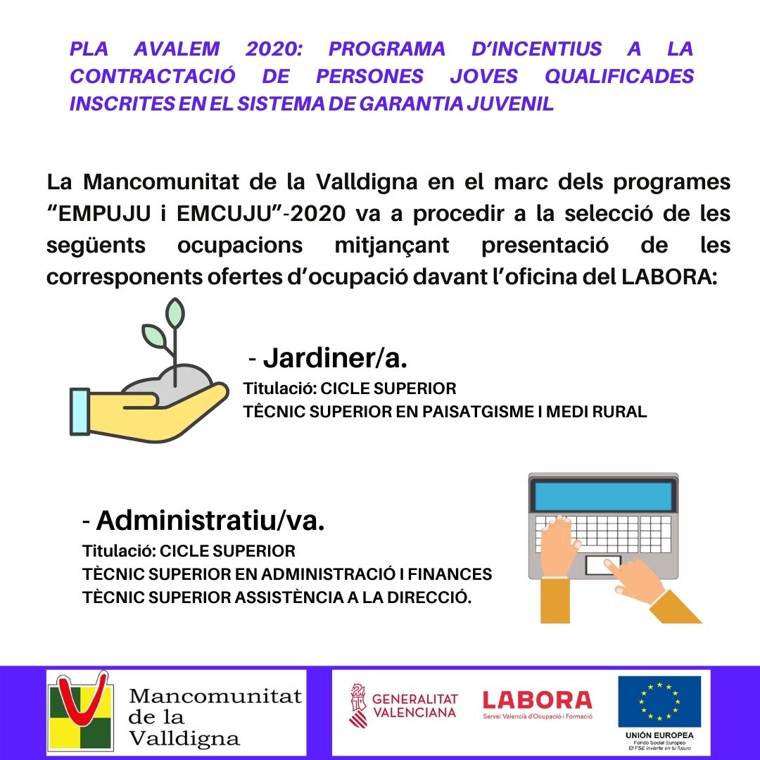 El periode de presentació de sol·licituds del personal del taller d'ocupació será de 5 dies hàbils a partir de l'endemà de la seua publicació, en este cas, concretament del 25/11/2020 a l'1/12/2020. El de l'alumnat no està obert, serà provisionalment del 2 al 9 de desembre 2020. Del 25 al 30 de novembre, els interessats en participar s'hauran d'nscriure al Labora o a l'Ajuntament.